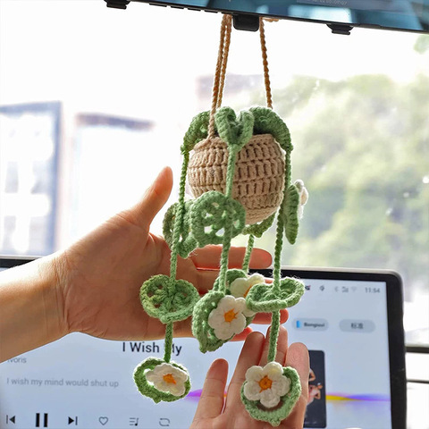 Cesto di piante da fiore appese all'uncinetto per decorazione auto accessori per specchietto retrovisore regali